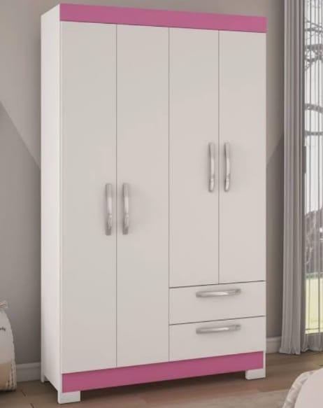 GUARDA ROUPA NT5005 BRANCO/ ROSA 4 PORTAS
